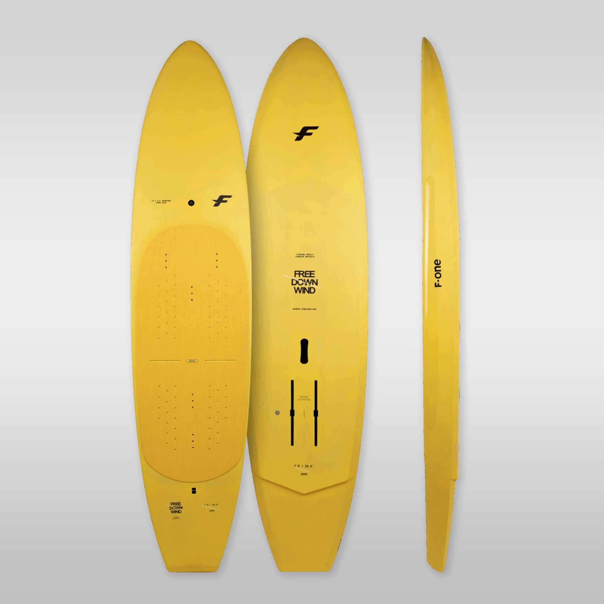 Compared to the Free Surf, the Free Downwind is the more stable board with more thickness, a wider nose, a larger bottom, and more angular rails. The foot pressure is slightly further forward, in the style of classic F-ONE boards. It is designed for riders who prefer stability and easy take-offs, even in demanding or choppy conditions.